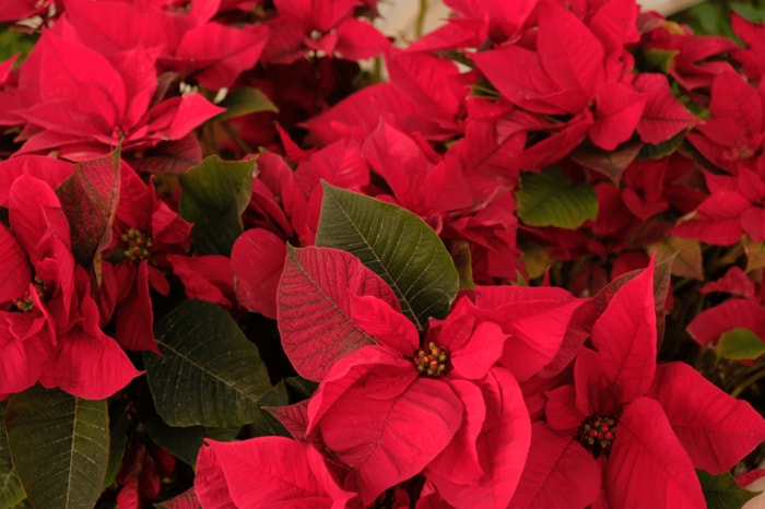 クリスマスシーズンには街中で見かけるポインセチア。星型に大きく咲き開く赤い花が、クリスマスの雰囲気を盛り上げます。低温にやや弱いので、寒さが厳しくなったら室内に取り込むとよいでしょう。※参考価格:1000~2000円前後(3号ポット苗)