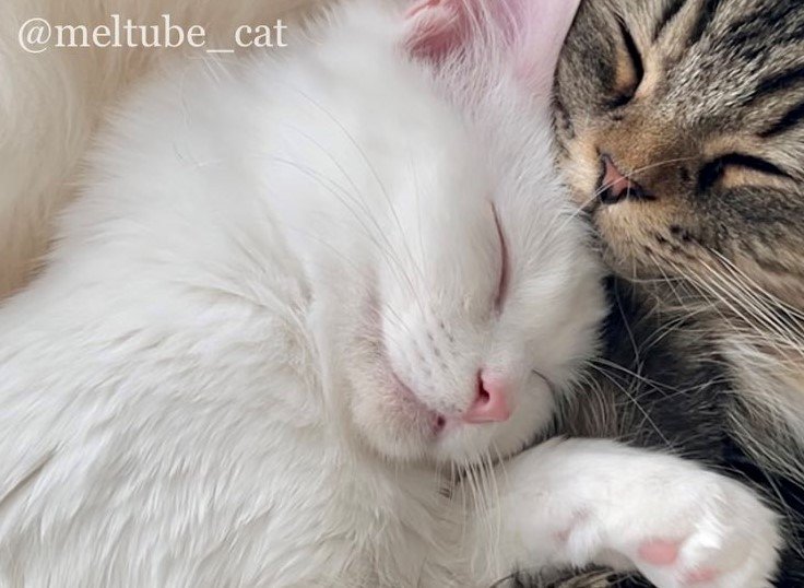 今では1歳になったというマオくん。お兄ちゃん的存在であるメルくんに体を密着させていますね。安心して気持ちよさそうに眠る姿を眺めていると、自然とこちらの心まで温まってきます……!