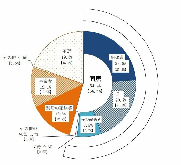 さらに、「誰が介護をしているか」を表した調査では、要介護者と同居の配偶者(23.8%)が最も多くなっており、次に同居の子(20.7%)となっています。
