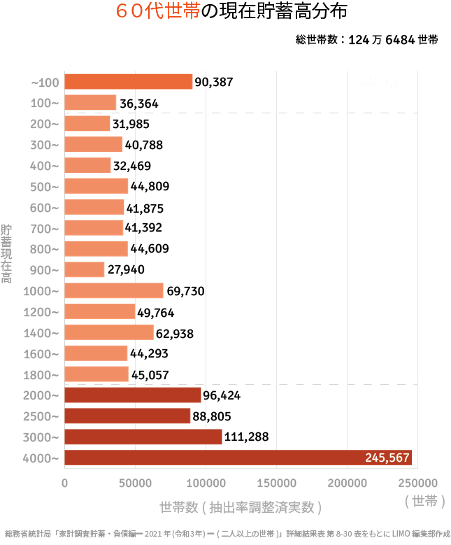60歳代以上の貯蓄現在高(124万6484世帯)