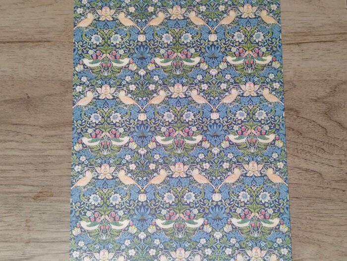 定番のデザインである「いちご泥棒」のコラージュペーパーです。いちごやツグミがかわいいです。