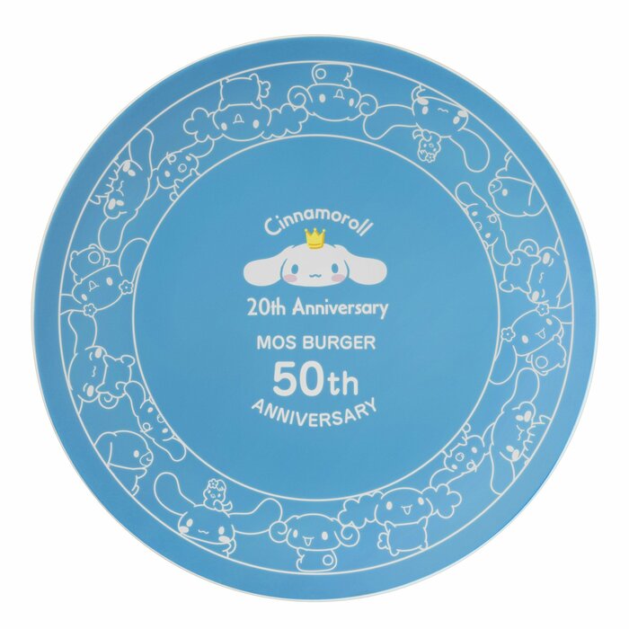 「限定プレート付きセット<シナモロールプレート・モスチキン・セットドリンク>」は、シナモロールがデザインされたオリジナルプレートと、モスチキン・ドリンクがセットになった商品です。オリジナルプレートは2種類あり、どちらか1つが付いてきます。(プレートは選べません)デザインはシナモンがモスチーズバーガーを持っているものと、モスバーガー50周年とシナモロールの20周年を記念したものがラインナップ。どちらもシナモンが王冠をつけており、特別感を演出しています。