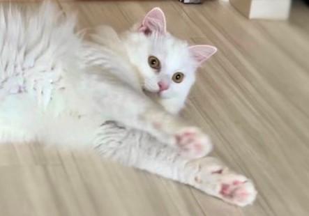 写真に写っているのは、白猫の「マオくん」。推定1歳の男の子です。