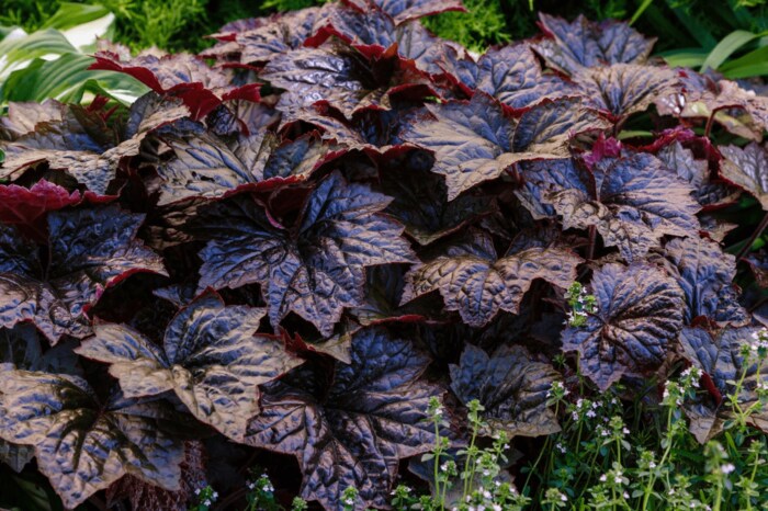 日陰で生育可能なヒューケラは、寒さにも強い多年草。カラフルな葉色は一年中あせることがなく、シェードガーデンにもオススメです。グランドカバープランツとして冬の庭を鮮やかに彩ってくれるでしょう。
