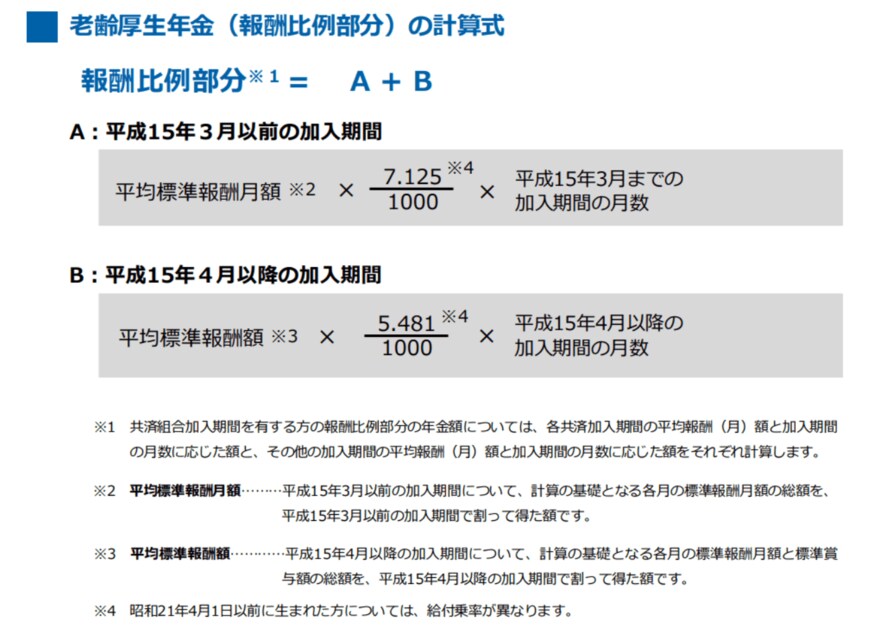 (2)平成15年4月以後=平均標準報酬額×5.481/1000×平成15年4月以後の月数