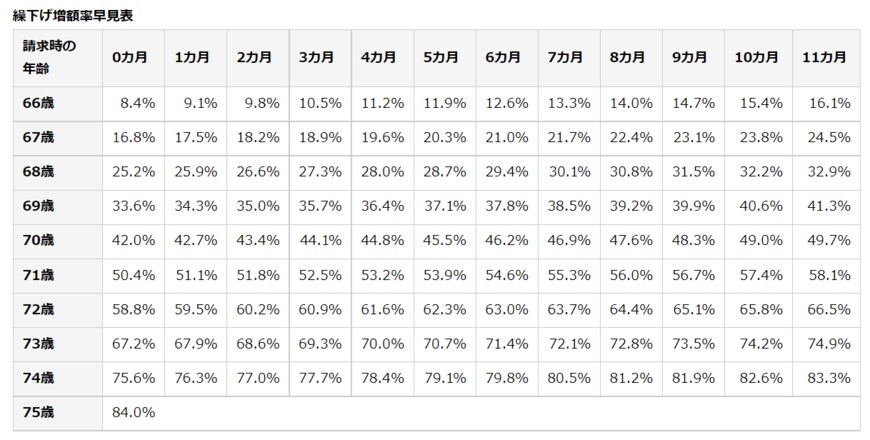 - 「後ろ倒しした月数×0.7%」の増額率が適用される