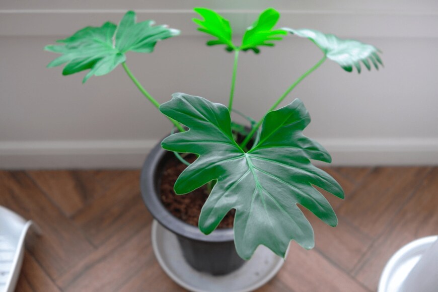 さまざまな品種のあるフィロデンドロンですが、なかでもセロームは切れ込みの入った葉がオシャレな観葉植物です。個性的なインテリアにもよく似合います。