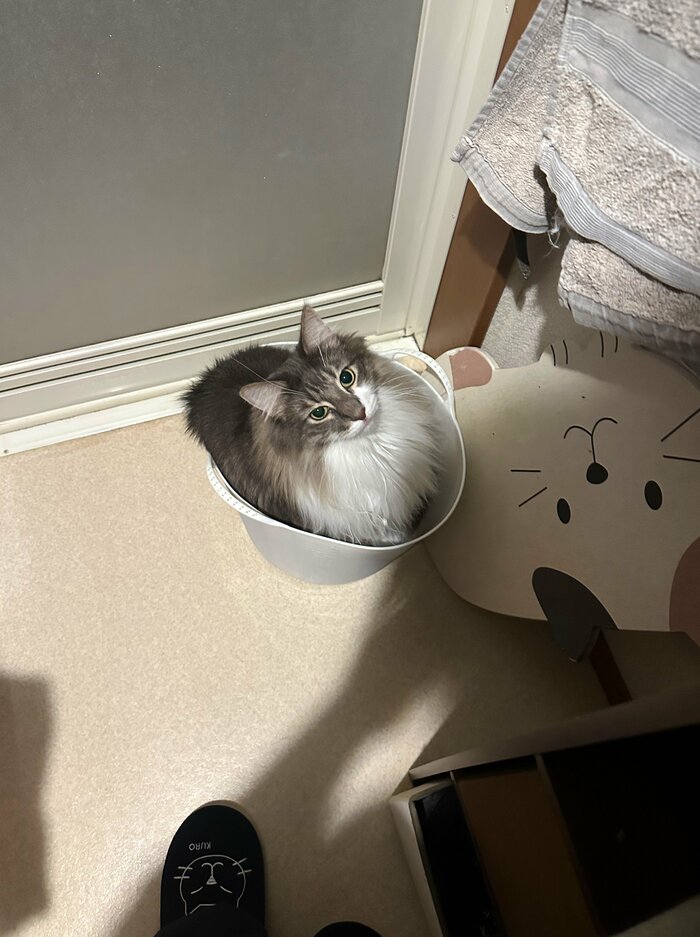 洗濯かごから猫を連れ出して戻ると…まさかのループ状態に