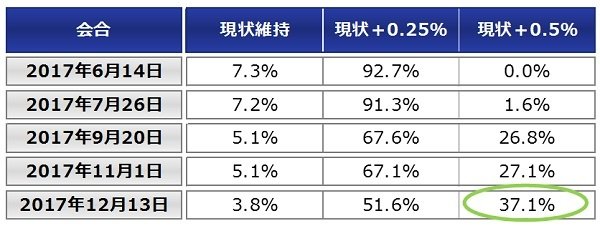 加えて、6月13~14日に開催される米連邦公開市場委員会(FOMC)にて、0.25%の利上げが行われる蓋然性は高いものの、その先の利上げのペースについては不透明感が満載です。FF金利先物から算出される利上げ確率では、12月会合までに、合計0.5%利上げされる確率(6月に加え、追加で0.25%の利上げをあと1回)は、4割弱に留まっています(図表1)。