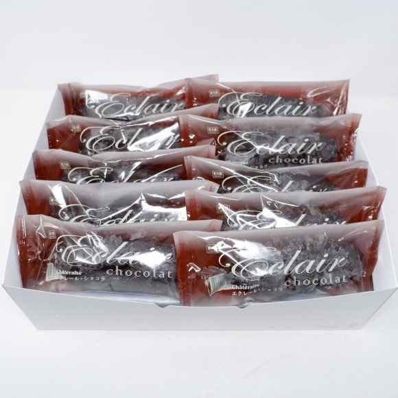 カカオの上品な香りが広がるエクレアです。ココア味のシュー生地にちょっぴりビターなベルギー産のクーベルチュールスイートチョコカスタードクリームたっぷり!上掛けのチョコもたまりません。このクオリティの高さで1個あたり108円(税込)はお得感ありです。