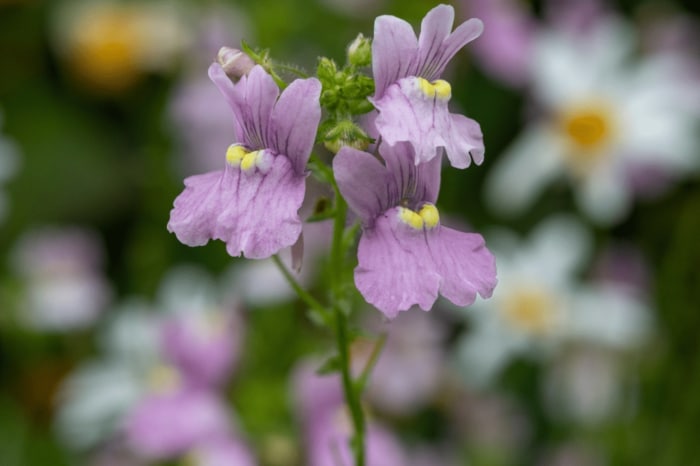 蝶のようなカワイイ小花を密集させ、オシャレな花房をつくる宿根ネメシア。春のみに開花する一年草ネメシアとは違い、宿根ネメシアは耐寒性に優れ秋から春にかけ長期間花が楽しめるのが特徴です。