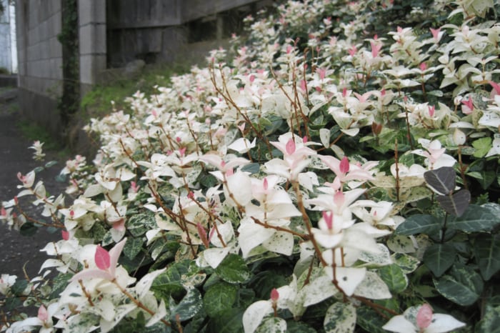 ホワイトとグリーン、ピンクのコントラストが美しいハツユキカズラ。葉の形がシンプルなので、どんな植物にも合わせやすいでしょう。