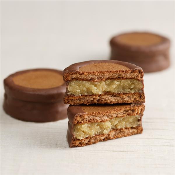 「チョコマロン」は、栗餡をココア入りのビスケットでサンドして、ミルクチョコレートでコーティングを施したお菓子です。栗餡はラム酒で味が調えられているのが特徴で、仕上げのコーティングはなんと手作業。ひとつひとつ丁寧に作り上げられています。