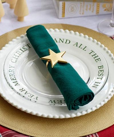 星形のリングと、クリスマスツリーのようなグリーンカラーがおしゃれなテーブルナプキンです。