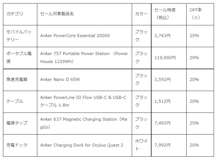 【Amazonのブラックフライデー】アンカーの人気170製品以上が最大50%OFF アンカーのおすすめ商品をチェック 2022.11.25 17:30 公開 執筆者LIMO編集部 copy URL 目次[開く] 1.【Amazonのブラックフライデー】アンカーの170製品以上が最大50%OFF 2.【Amazonのブラックフライデー】アンカーのセール対象商品 2.1【アンカー】セール対象のスマートフォンアクセサリ・ポータブル電源 2.2【アンカー】セール対象の家電製品・オーディオ 3.【Amazonのブラックフライデー】アンカーのワイヤレスイヤホン「Soundcore Space A40」が最安値に 3.1 Soundcore Space A40の機能 4.【Amazonのブラックフライデー】アンカーのロボット掃除機「Eufy RoboVac L35 Hybrid+」もチェック 4.1 Eufy RoboVac L35 Hybrid+の基本仕様 5. Amazonのブラックフライデーでアンカーの人気商品をお得に購入 参考資料 2.【Amazonのブラックフライデー】アンカーのセール対象商品 ここからは、セールの対象商品をチェックしていきます。 2.1【アンカー】セール対象のスマートフォンアクセサリ・ポータブル電源 すべての画像を見る(6枚) 出所:アンカー・ジャパン株式会社「【アンカー・ジャパン】恒例のビッグセール「Amazonブラックフライデー」にて、Ankerグループ170製品以上を最大50%OFFで販売」(2022年11月18日) 2.2【アンカー】セール対象の家電製品・オーディオ 出所:アンカー・ジャパン株式会社「【アンカー・ジャパン】恒例のビッグセール「Amazonブラックフライデー」にて、Ankerグループ170製品以上を最大50%OFFで販売」(2022年11月18日) さまざまな商品が対象となっていますね。では、おすすめの商品を次から解説していきます。 3.【Amazonのブラックフライデー】アンカーのワイヤレスイヤホン「Soundcore Space A40」が最安値に < 1 2 3 4 5 > 関連タグ #アンカー #ブラックフライデー #Amazon #イヤホン 注目コンテンツ 年齢入れて5秒で見積もり!人気の医療保険ランキングをチェック[PR] 【LIMOで懸賞】新しいプレゼントが続々登場中!最新情報はこちらから[PR] 上皮内がんも対象になるがん保険。1番人気のがん保険は?[PR]