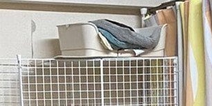 どうやらシイタケくんは、ケージの上に潜んでくつろいでいたようです。写真の中央上部をアップにしてよく見てみると、ケージの上に少々モフっとした存在を確認できます……!