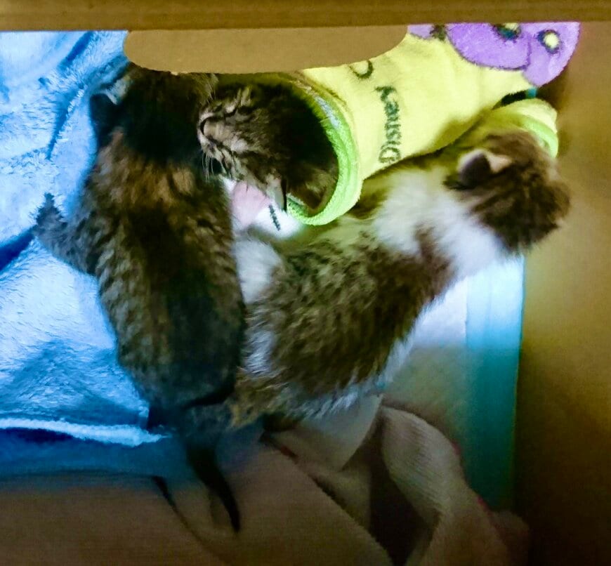 5匹の保護猫ちゃんと暮らしているという「@luna7taka9」さんは、2022年11月17日に3枚の写真を投稿しました。ツイートには「会社の倉庫の中で育児放棄されていて」とコメントが添えられていました。