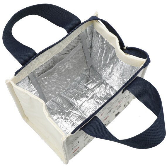 たくさんのスヌーピーがかわいいランチバッグです。紺色の持ち手もかわいいです。下の写真のように、内側は保冷バッグ仕様となっています。