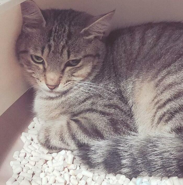 元野良猫の「メロン」くん、当初はトイレにこもっていたといいます
