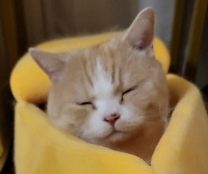 スッポリと身をおさめて、とても幸せそうな表情を浮かべています……!体を包んでくれるあたたかいクッションは、ししまるくんにとって安心感のある場所になったのかもしれませんね!