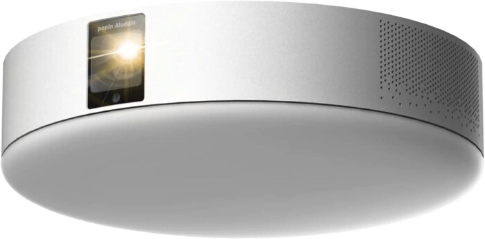 popIn Aladdin 2 Plusは、場所を取らずに大画面を実現するシーリングライトとプロジェクターを搭載。明るさを900 ANSIルーメンにアップし、臨場感あふれるドルビーオーディオプラスをサポートしています。