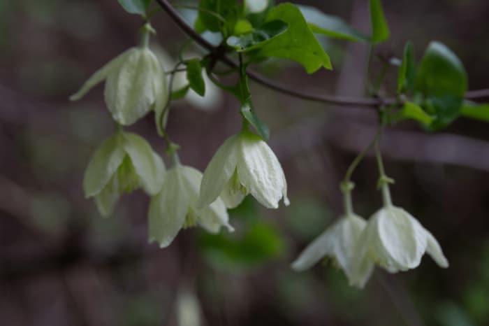 秋から翌年の5月頃まで咲く冬咲きクレマチスは、ベル型をしたカワイイ花を下向きに咲かせるのが特徴です。