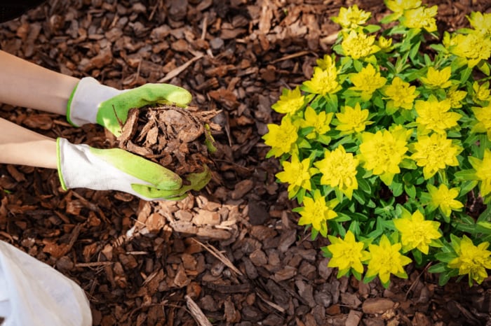マルチング材で株元の土をしっかり覆ってあげましょう。マルチングは保温だけでなく、雑草の発生を抑えたり害虫から守ったりできる効果もあります。