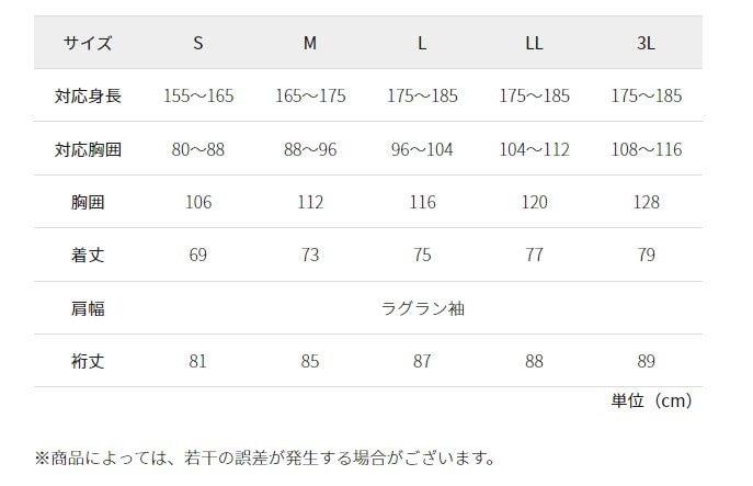 - サイズ:S、M、L、LL、3L