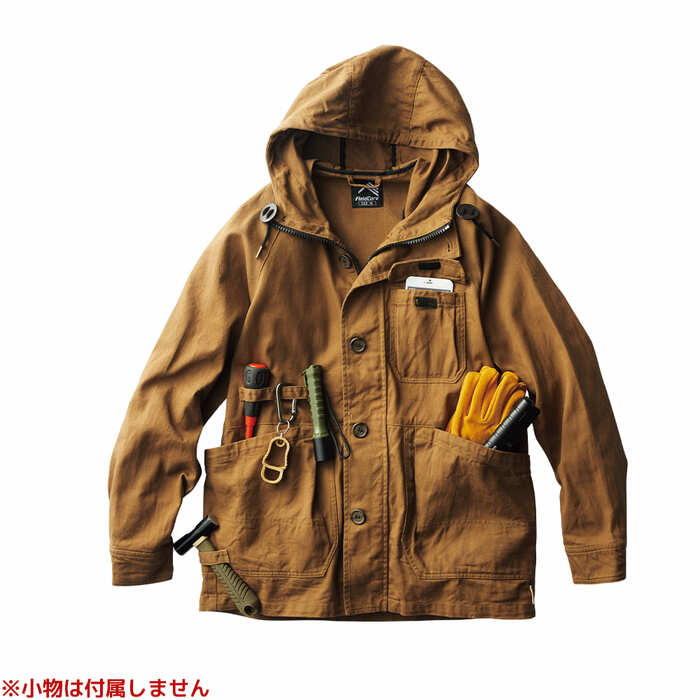 ワークマンのコットンキャンパーには写真のようにポケットがたくさんついています。胸ポケットにはスマホも収納できます。