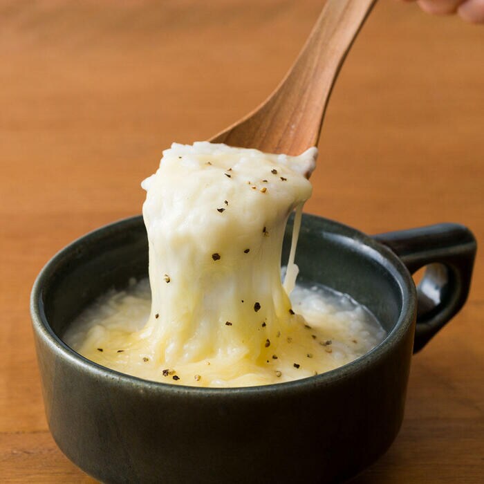 残ったスープにご飯とチーズを入れ、仕上げにブラックペッパーを散らせば、シメのレモンチーズリゾットが完成。おなか一杯なのに、ついつい手が伸びるほどおいしいと評判です。