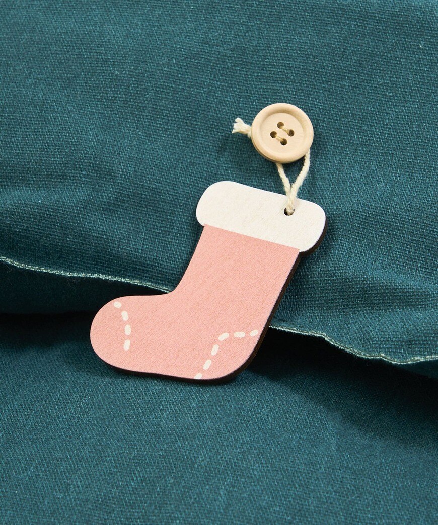 3COINSの「壁掛けツリー」はオーナメント付きのアイテムです。オーナメントは下の写真のように、ボタンにかけるだけで簡単に飾ることができます。