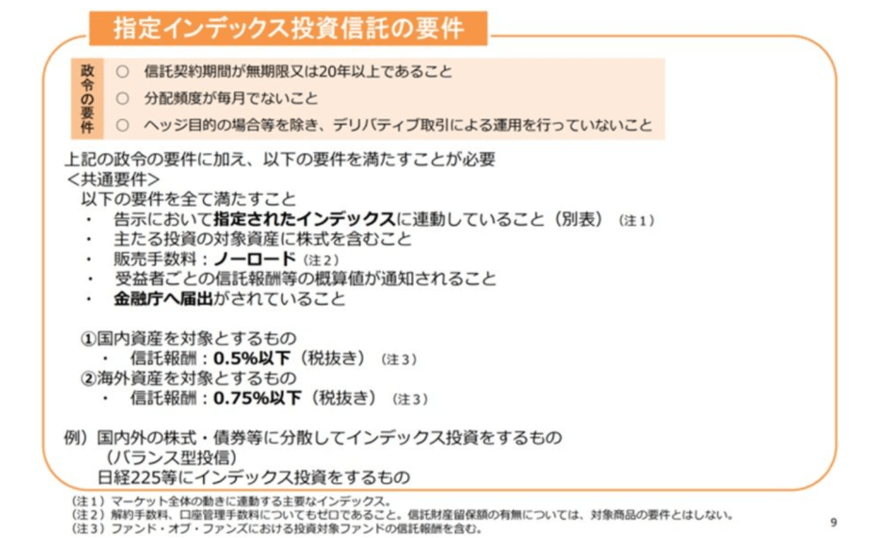 金融庁によると、つみたてNISAのインデックス投信の信託報酬は以下のように定められています。
