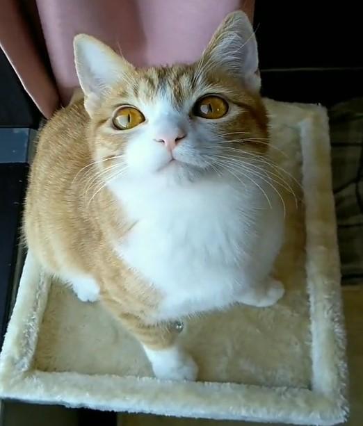動画に写っているのは、茶白猫の女の子「プリン」ちゃんです。