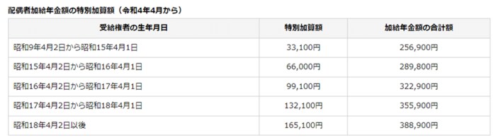 1943年(昭和18年)4月2日以後に生まれた方は、特別加算額が16万5100円となります。