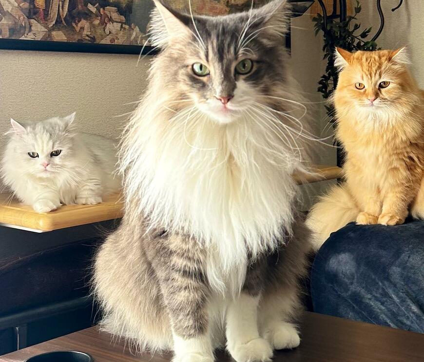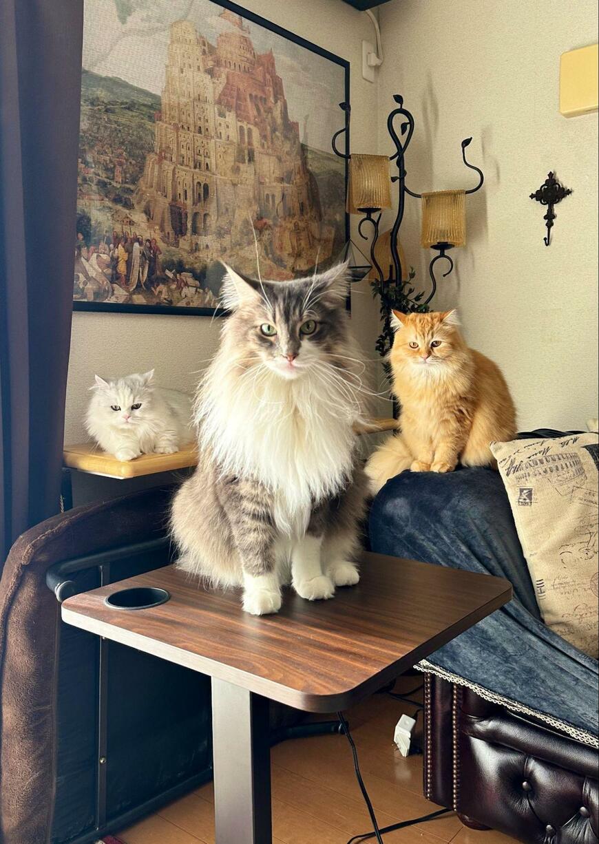 凛々しい表情を浮かべた3匹の猫ちゃんたちが、それぞれ絶妙なポジショニングを取っています。その光景はまるで「CDジャケット」みたい……!