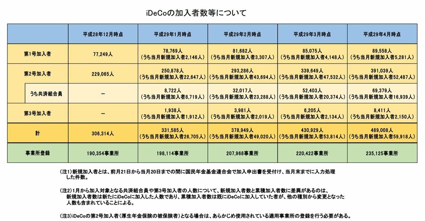 2017年1月から公務員や専業主婦など従来は加入できなかった人にも対象が拡大し、20歳以上60歳未満のほぼすべての人が加入できるようになったiDeCo。制度拡大から間もなく半年が経過しますが、制度拡大後の新規加入者の状況が5月31日に国民年金連合会から公表されました。