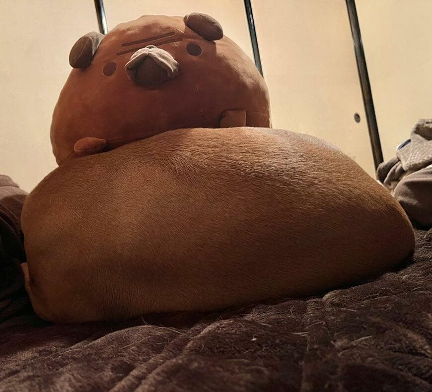 茶色のぬいぐるみと一体化する、ワンちゃんの写真が話題に