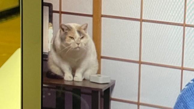 「zoomの打ち合わせに参加しがち猫」という書き込みとともに投稿されたのは、1枚の写真でした。