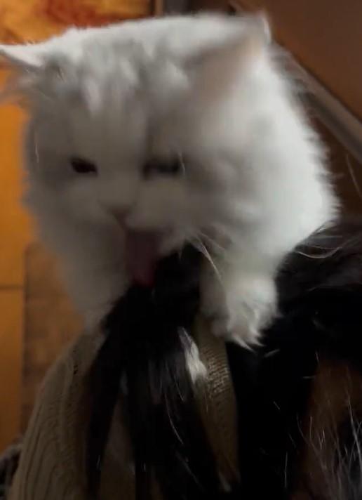 「自分もされてみたいです!羨ましい限りです(笑)」「お返しのグルーミングをしてあげなければ認定されません」「これは猫認定ニャ……」「耳を見ると相当必至になっているようですね。愛情表現なのではないでしょうか」「髪を追って登ってくるとか可愛すぎます」といった内容のコメントが続々と集まっています。