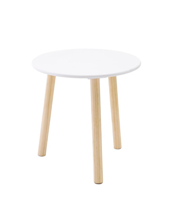 白色の天板にナチュラルな木目調の脚で温かみがあります。小ぶりサイズなので、インテリアとしてもジャマになりません。1000円にも満たない価格で、つくりがしっかりしているテーブルが揃えられるのは、さすが3COINSですね。