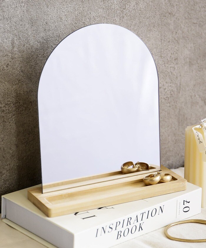 毎日つかうアイテムで差をつけたいなら、どんな部屋にも馴染みやすいミラーはいかがでしょうか。シンプルなアーチ状のミラーとトレーで、つかい勝手も抜群です。