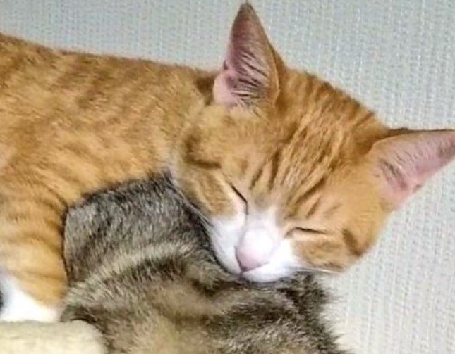 ふたりの名前は、キジトラ猫の男の子「メロン」くんと、茶白猫の女の子「プリン」ちゃんです。とっても甘えん坊なプリンちゃんは、普段からメロンくんにベッタリなのだそう。