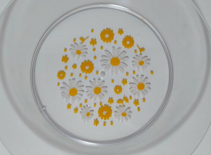 ホワイトとイエローのマーガレットがかわいいデザインです。花のサイズがさまざまなのも素敵です。食卓を明るくしてくれそうです。