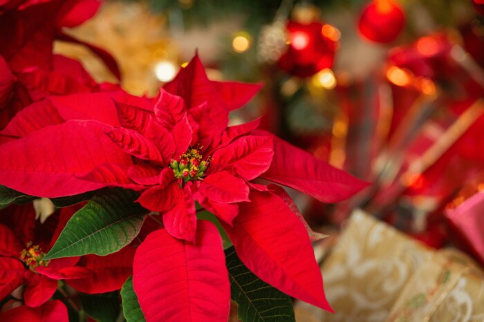 赤の包葉が美しいポインセチアはクリスマスを彩る植物。華やかな色彩でクリスマスムードを盛り上げます。