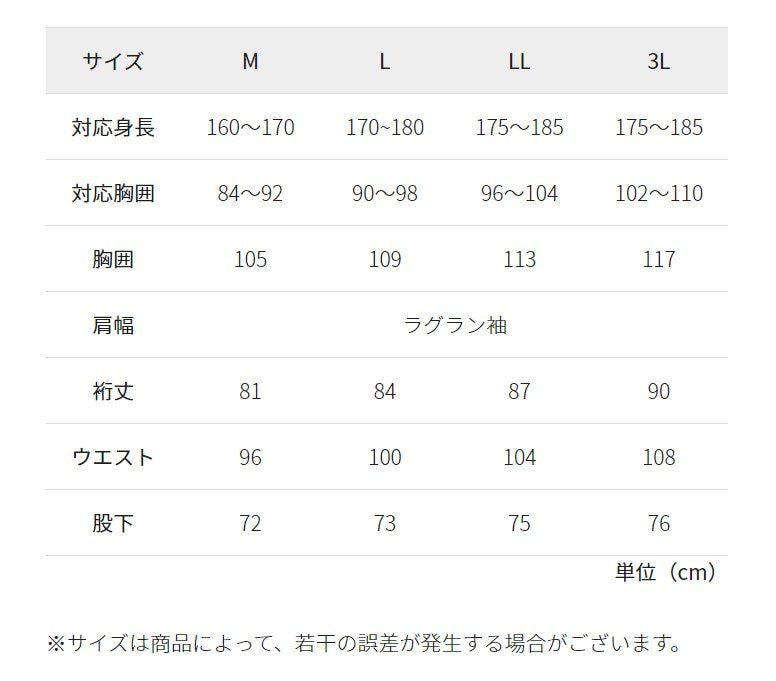 - サイズ:M、L、LL、3L