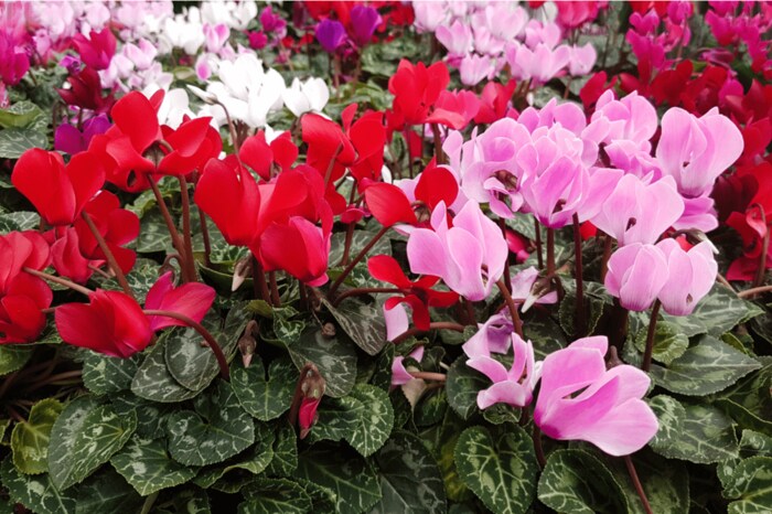 ガーデンシクラメンは戸外の寒さにも耐えられるように品種改良された冬の花。大人っぽい美しさで、冬の庭を彩る人気の植物です。