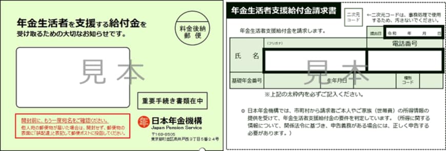 年金生活者支援給付金の対象となる方には、毎年9月頃に「年金生活者支援給付金請求書」が届きます。