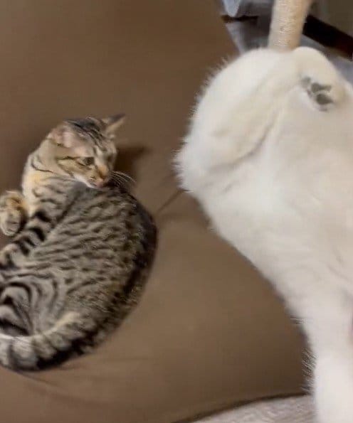 リプライ欄には「サンくんに甘えながら、ゴロンゴロンしているユキちゃん……!」「ヨギボーの上でお顔をスリスリ、可愛いです」「落ち方まで可愛い(笑)」といった内容のコメントが多数寄せられていました。
