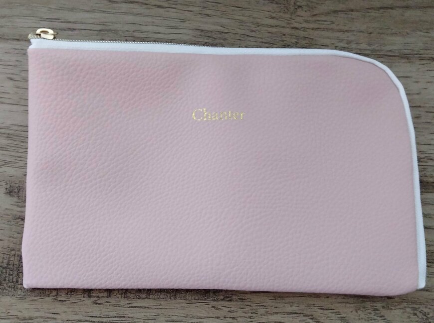 最後にピンクデザインです。やわらかいカラーが愛らしいアイテムです。ファスナーはゴールドです。土台部分がホワイトで優しい色合いなのも素敵です。