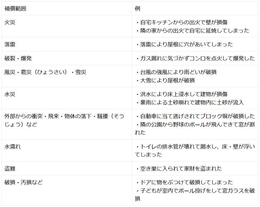 まずは、一般的な火災保険の補償範囲について見ていきましょう。